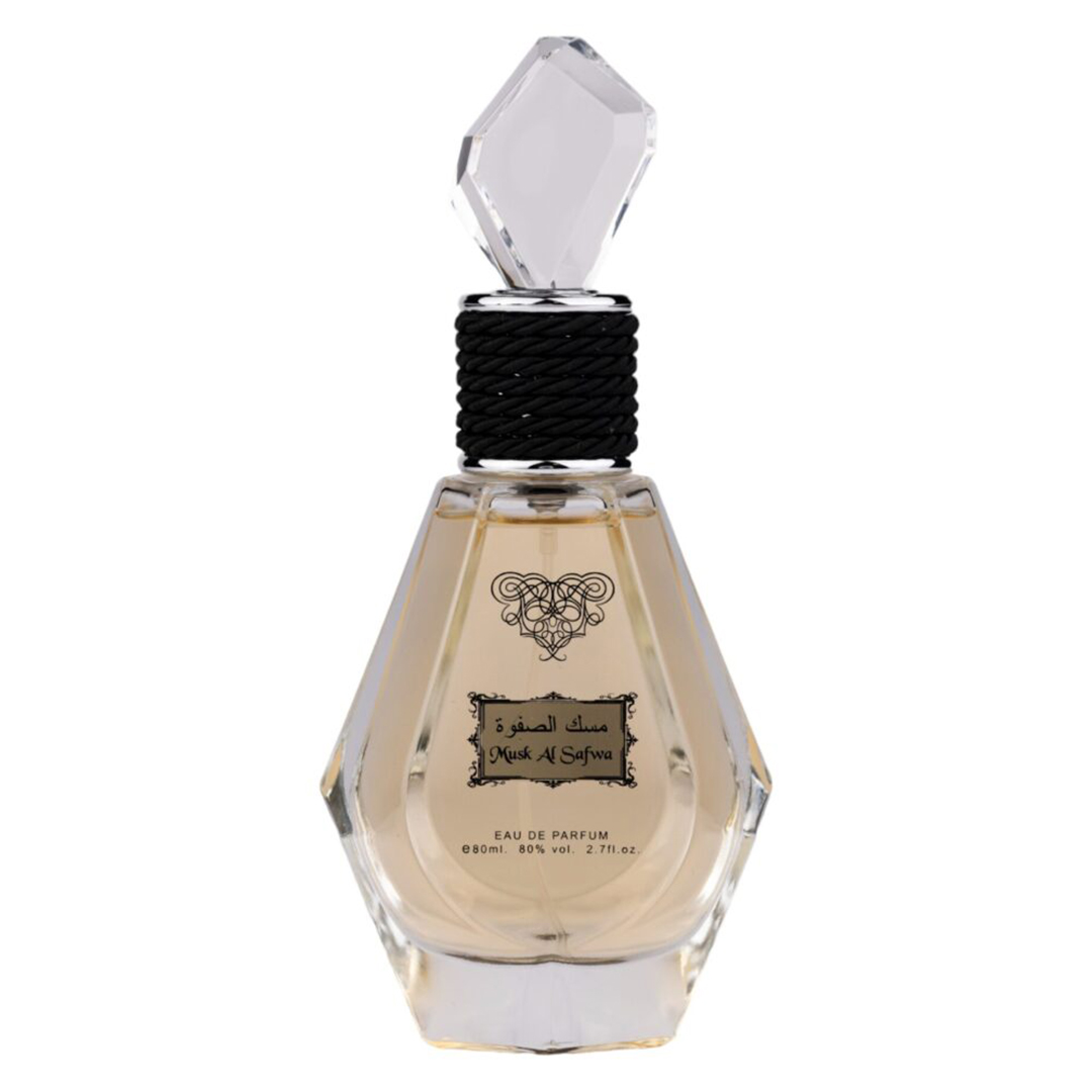 Musk Al Safwa este o poveste olfactivă de neuitat, inspirată de tradiția și misterul Orientului Mijlociu. Notele de vârf de bergamotă și citrice se împletesc armonios cu accentele florale, creând un buchet proaspăt și vibrant. În inima parfumului, iasomia, patchouli-ul și trandafirul își dezvăluie eleganța și feminitatea, aducând o profunzime subtilă. Baza parfumului este dominată de lemn de santal, vanilie și mosc alb, care îmbracă pielea cu o aură seducătoare și misterioasă.